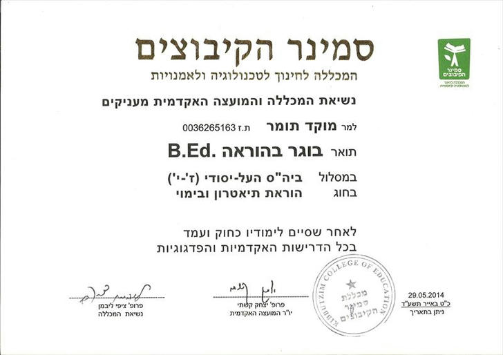 תואר B.Ed. מוסמך על ידי משרד החינוך ומוכר בישראל — מה שמאפשר לבוגרים להשתלב במגוון רחב של מסגרות חינוכיות:
